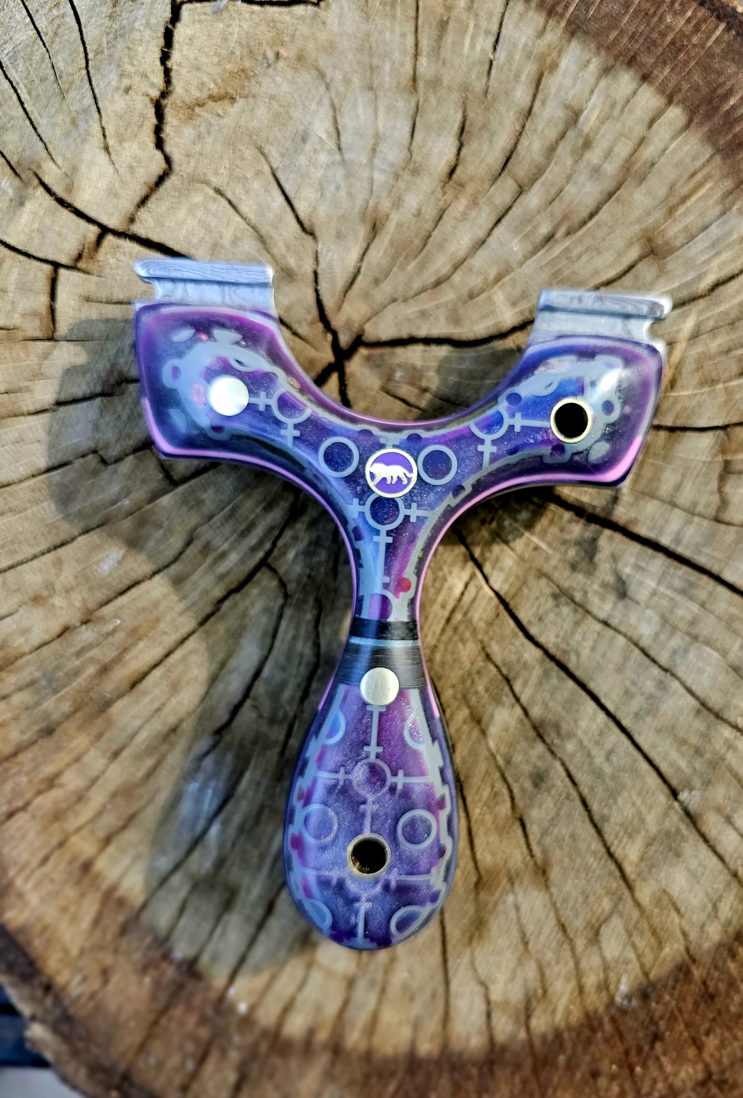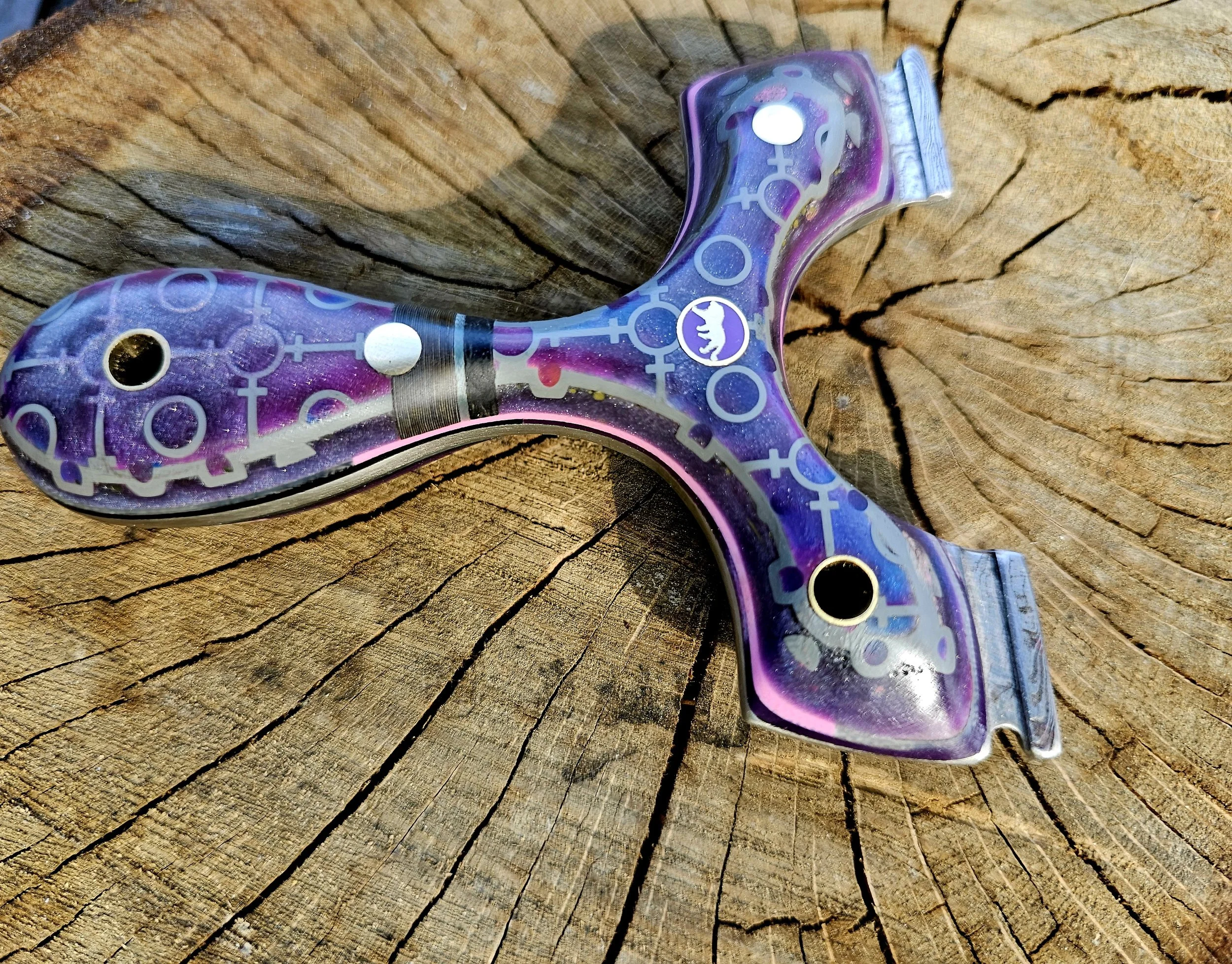 Shop Now › lions Paw 95mm world of Warcraft Image 1 of 5 Image 2 of 5 Image 3 of 5 Image 4 of 5 Image 5 of 5 lions Paw 95mm world of Warcraft $325.00 Damascus core, g10 layers and splits with hybrid glow resin , micarta and richlite. Held by brass and mosaic pins. Purchase Added! Damascus core, g10 layers and splits with hybrid glow resin , micarta and richlite. Held by brass and mosaic pins.